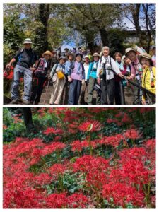 お寺からすぐのところに下る階段があり、真っ赤な彼岸花が群生していて写真タイムになりました。