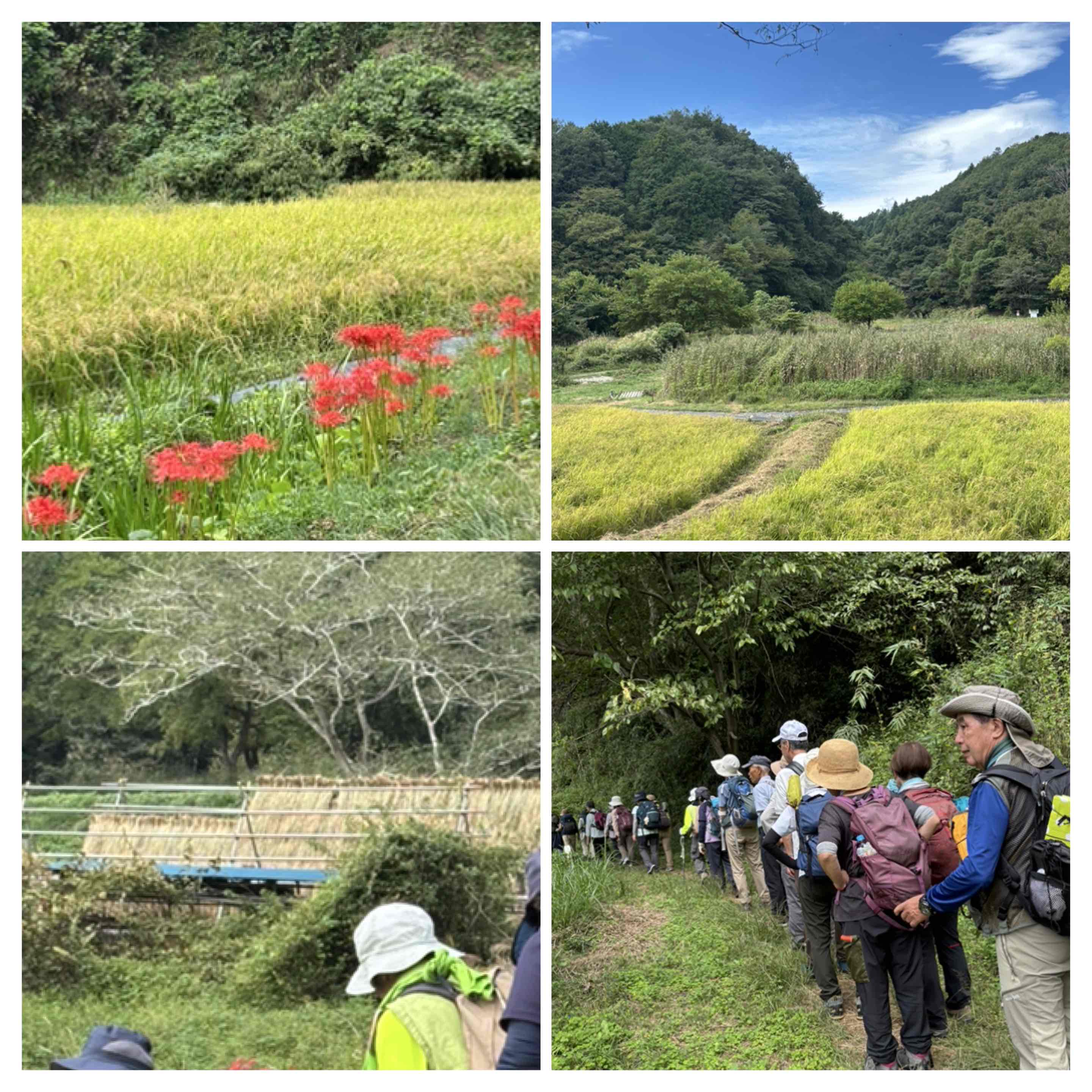 田んぼ、小川、湿地、谷戸。 刈り取られた黄金色の稲穂が天日干ししてあり、まだ新米食べてないなぁ、食べたいなぁと思いました。猛暑の日でしたが、ここは確実に秋が訪れていました。
