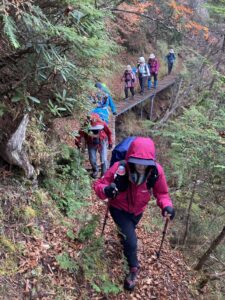 あの緊張の連続、かつ登り下りのオンパレードの長いコースをさくさく歩くリーダーやベテランのおいらくの先輩達に敬服です。