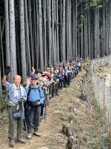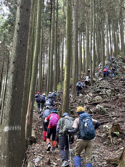 コメント 昨晩からの雨も朝には止み晴れの登山日和だ。新幹事鄧リーダーの初山行を一緒に登ろうと48名のメンバーが軍畑駅に集まった。リーダーの挨拶からはじまり4班に分かれスタート。