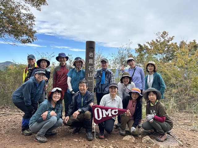 本日は多摩川渓谷の北側の高水山(759m)岩茸石山(793m)惣岳山(756m)の三山を縦走する奥多摩の人気のコースだ。一座目高水山頂までは杉の原生林の中をひたすら登る。太古の世界に迷い込んだようだ。山頂も木に覆われ眺望はなく山頂標識がなければ見過ごしでしまいそうだ。二座目岩茸石山まではここから約30分。三山の中で一番展望が開け関東平野や秩父の山々を見渡せる。地図を片手に「あれが棒ノ折山、向こうに雲取山が…」とおいらくならではの光景。お昼休憩後、急斜面を下り三座目の惣岳山へ。山頂直下に小さな岩場があるものの問題なく通過し山頂へ。ここも山頂とは言え神社の奥宮があり標識がなければ通過してしまいそうだ。三座縦走も終わり御嶽駅へと下る。予定行動時間ぴったりに駅に到着する。素晴らしいペース配分に参加者から拍手。