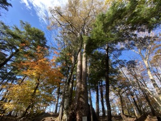 コメント 登山口から急登を一歩一歩進む。緑青腐菌(ロクショウグサレキン)という青いキノコに驚いたり、ケムリダケを突いたり、カラマツの巨木に圧倒される。やがて登山道は左側が切れ幅が狭い巻道になり、慎重に通過する。