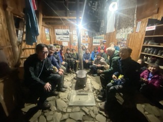 雁坂小屋に予定より遅れて到着したが、小屋番の方は、ストーブを焚き、ウェルカムコーヒーを用意して迎えて下さった。お心遣いに私たちの心も温かくなる。今夜は、おいらくの貸切で遠慮なく賑やかに過ごす。リーダーから翌日のコース変更の提案があり、全員が承知する。(カットした笠取山は改めて会山行を計画して下さるそうで、乞うご期待)