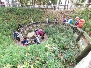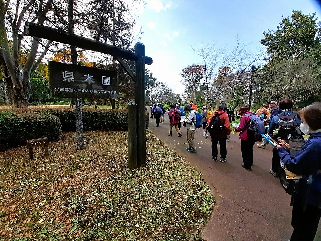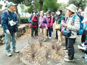 ただ今回は距離が短いうえに堰堤工事も重なり、川を眺めて歩く距離が短いので森の中にある広大な「府中郷土の森博物館」の中の公園を随所で説明をしながら歩きました。