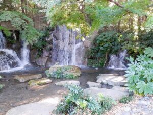 明治になり、郵便ハガキ等を投函する初めての四角い郵便ポスト、地下に降りて水を汲む、昔の「まいまいず井戸」、モミジに囲まれた巨大な滝、恐竜に囲まれた水遊びの公園等を楽しみましが、圧巻は「県木園」。
