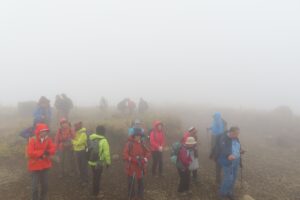 期待していた山頂からの眺めは、富士山は全く見えず、一瞬見えた芦ノ湖も、我々と一緒に上がってきたガスに隠されて、その後ずーと見えずじまいでした。