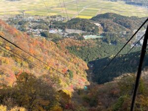 ここでお参りして山頂駅まで戻る。下山は紅葉の絶景をロープウェイで滑り