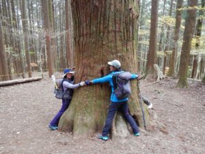まずは一ノ鳥居から表参道コースで武甲山山頂を目指す。途中に美しい不動滝、その先には大杉広場。童心に帰り、大きなスギの幹の周りをみんなで手を繋いで囲んだのが楽しかった。