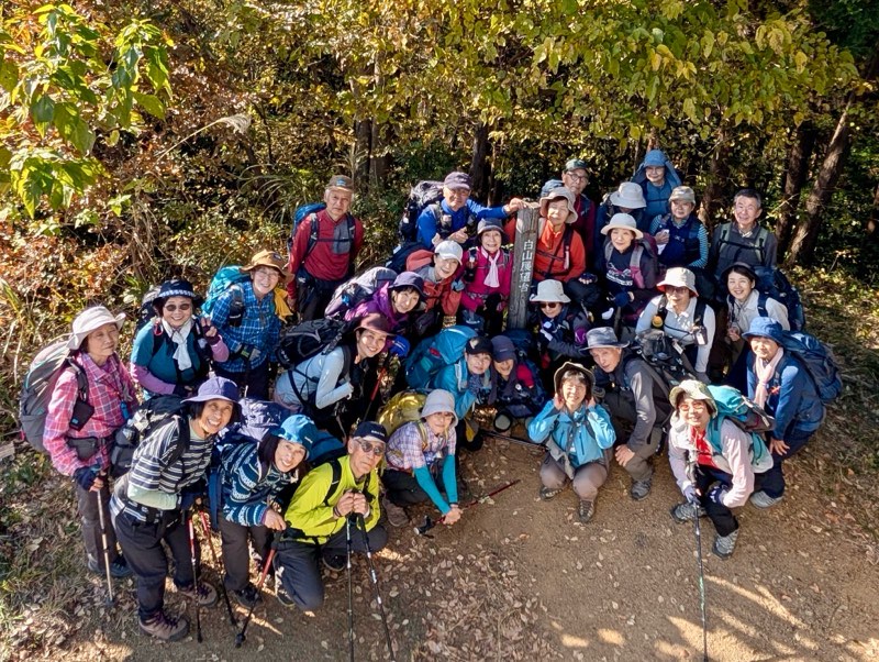 昨今の熊話題で少しの緊張感もありましたが、 歩きやすい山道で歩みは軽やか、落ち葉踏みの 伴奏と弾むお喋りの効果音で、無事に自然を楽しむ事が出来ました。