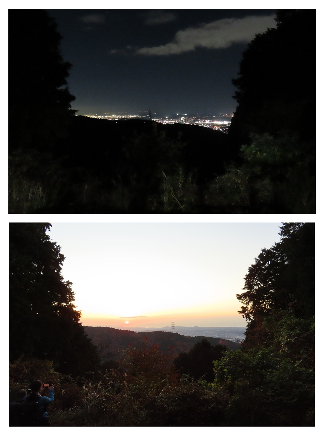 ➅夜景と日の出、小屋泊りならでは
