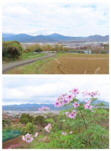 翌朝は、5時に起きてテラスへ。朝焼けの中を昇ってくる太陽を眺めるなんて、何時の事以来でしょうか。女性陣の全面的な協力もあって1時間も早く朝ごはんを済ませたので、空いた時間で一本松まで手ぶらで散歩します。オ-ナーの「紅葉、絶対見に行った方がいいですよ」のとおりでした。