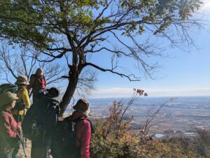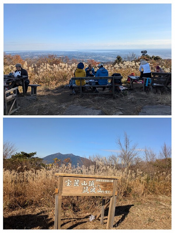 葉を落とした豊かな広葉樹の森は山桜の道。少しあえいで登るとそこにもコブシが林立している。 山頂からは美しい双耳峰の筑波山、振り返ると霞ケ浦が広がる。十分に展望を楽しんで緩やかな道を下る。