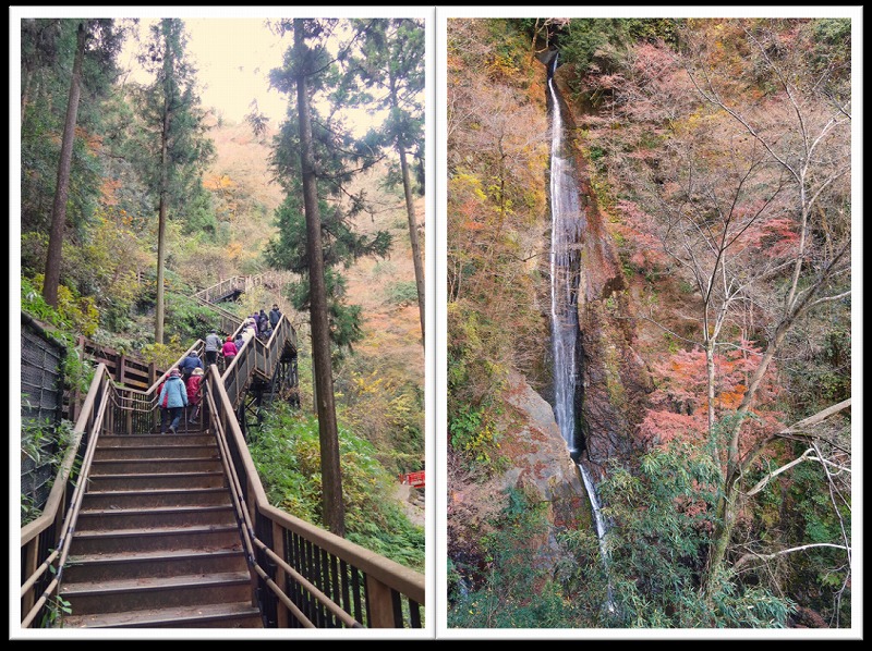 この滝は、「洒水」という名前こそ優雅だが、活断層の活動によって形成されたそうで、現在、土砂崩れのために近づけず、代わりに226段の階段を上って、上から滝壷を見た。