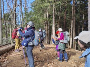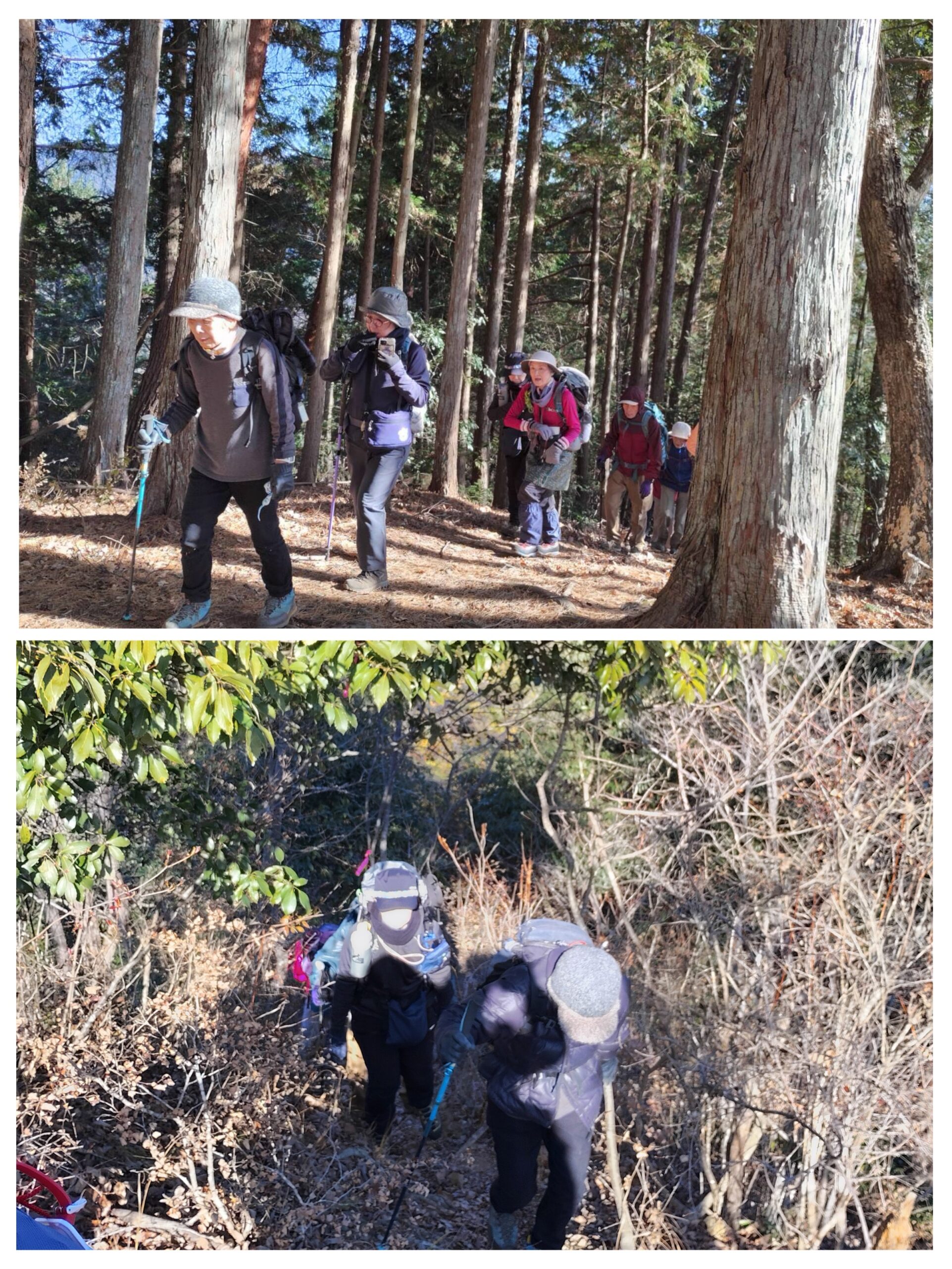 寒さのため説明の間にすっかり冷え込み、衣類調整をためらうほどでした。ですが、歩き始めた途端に始まる急登で、たちまち身体が暖まり、核心部に迫る頃には汗ばむほど。低山の登り、侮れません。