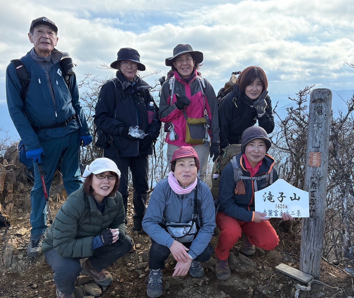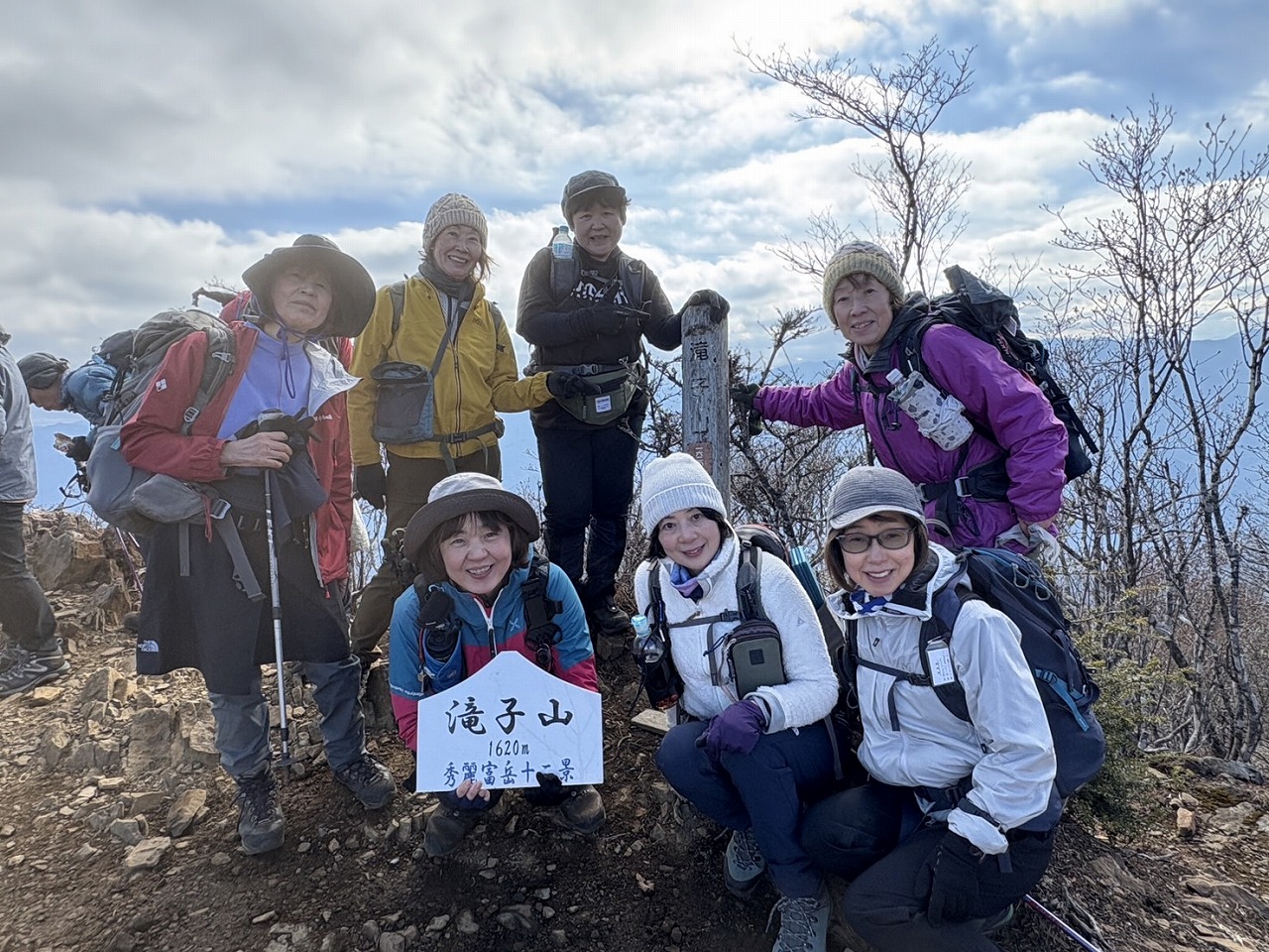 滝子山山頂では各班で記念写真を撮って下山です。あいにく山頂からは富士山はみられませんでしたが、山々にかすかに陽がさす絶妙な写真が撮れました。