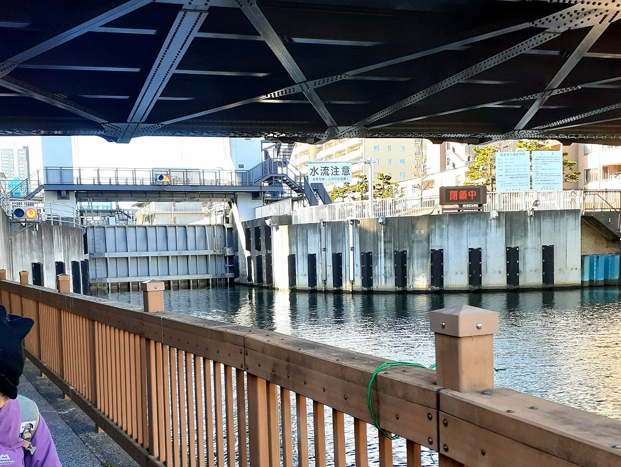 川の水位を調整する施設は田んぼに水を流す施設等沢山ありますが、船の通行のための水位調整の運河は、今回の扇橋水門が特に有名で「東京のパナマ運河」どころか「日本のパナマ運河」とも呼ぶ人もいます。なるほど、この運河はパナマ運河に比べれば比較のできない位に距離も短いですが、それでも実際にそばで見ると迫力満点で、堂々とした扇橋閘門には圧倒されます。