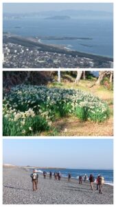 ①湘南平からの眺め、道端の早春、こゆるぎの浜