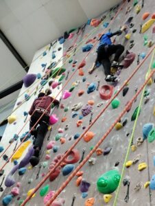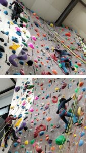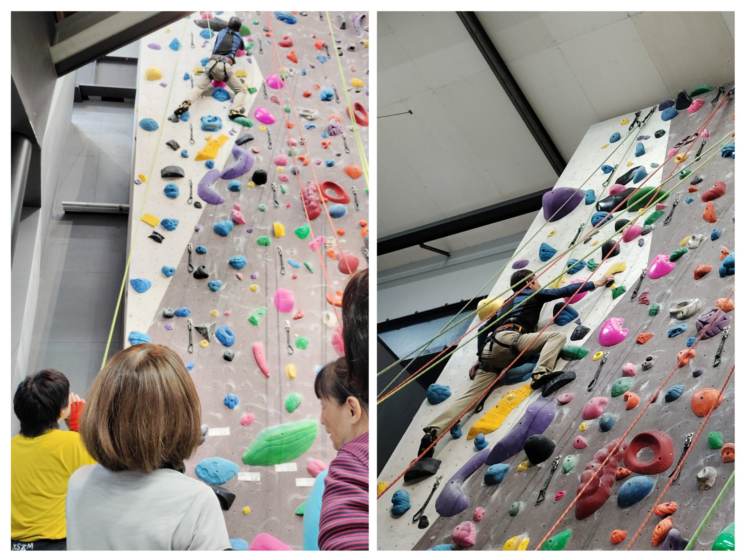 初めてのインドアです。今回初心者用の高さの低い壁が使えずいきなり10mの壁からの登り!