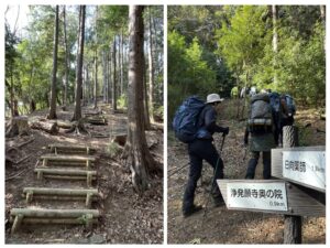 分岐も多く「こっちじゃない」と迷いやすい。浄発願寺奥の院の道標を見ながらピンクテープを頼りにバリエーションルートで大山分岐を目指す。(写真③)