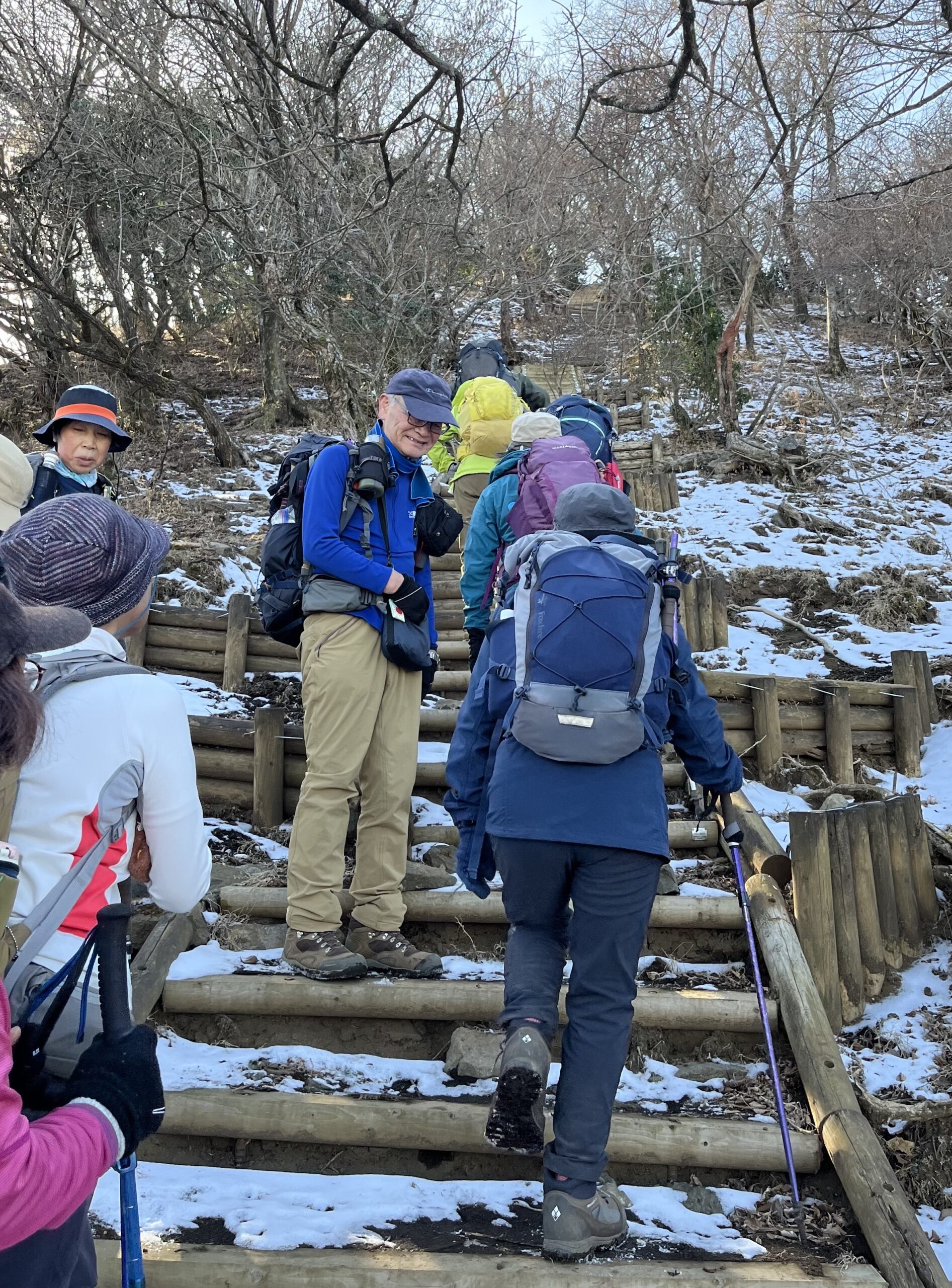 途中、残雪を踏み締めて階段を登る。(写真⑦)