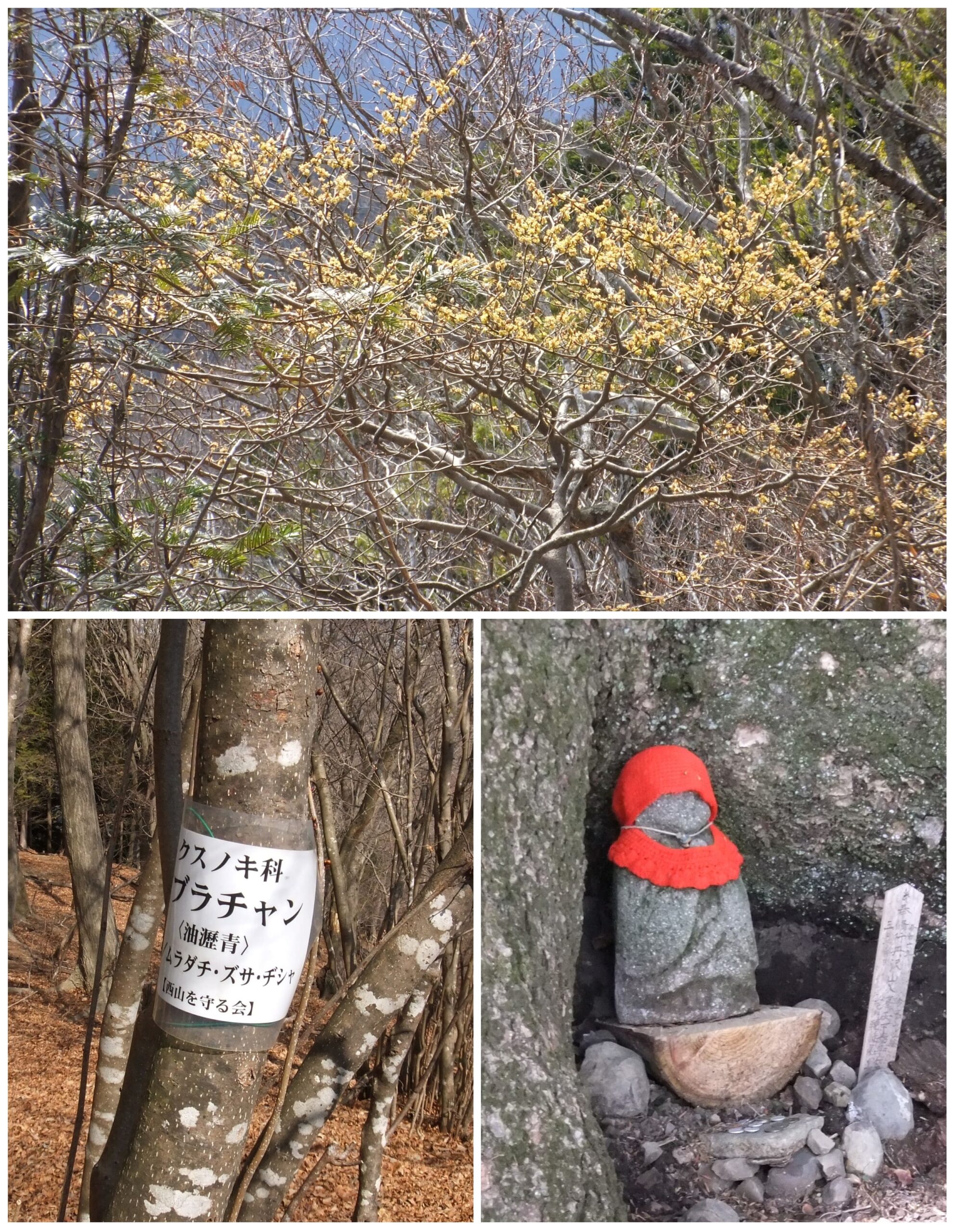 その後、同山頂で小休憩後、尾根筋の両側に咲くアブラチャンのツボミや花を見ながら荻野高取山を経て上荻野バス停へ下山し、全員が事故やケガもなく無事に山行を終えることができた。