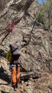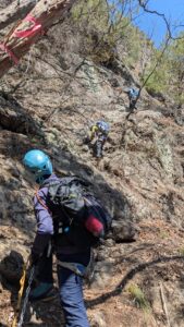カラビナ通過、クライムダウン、足場の悪いところでのフィックスロープ、懸垂下降といろんなシチュエーションの中で緊張感あり、達成感ありとギュッと詰まった充実した山行だった。ありがとうございました。