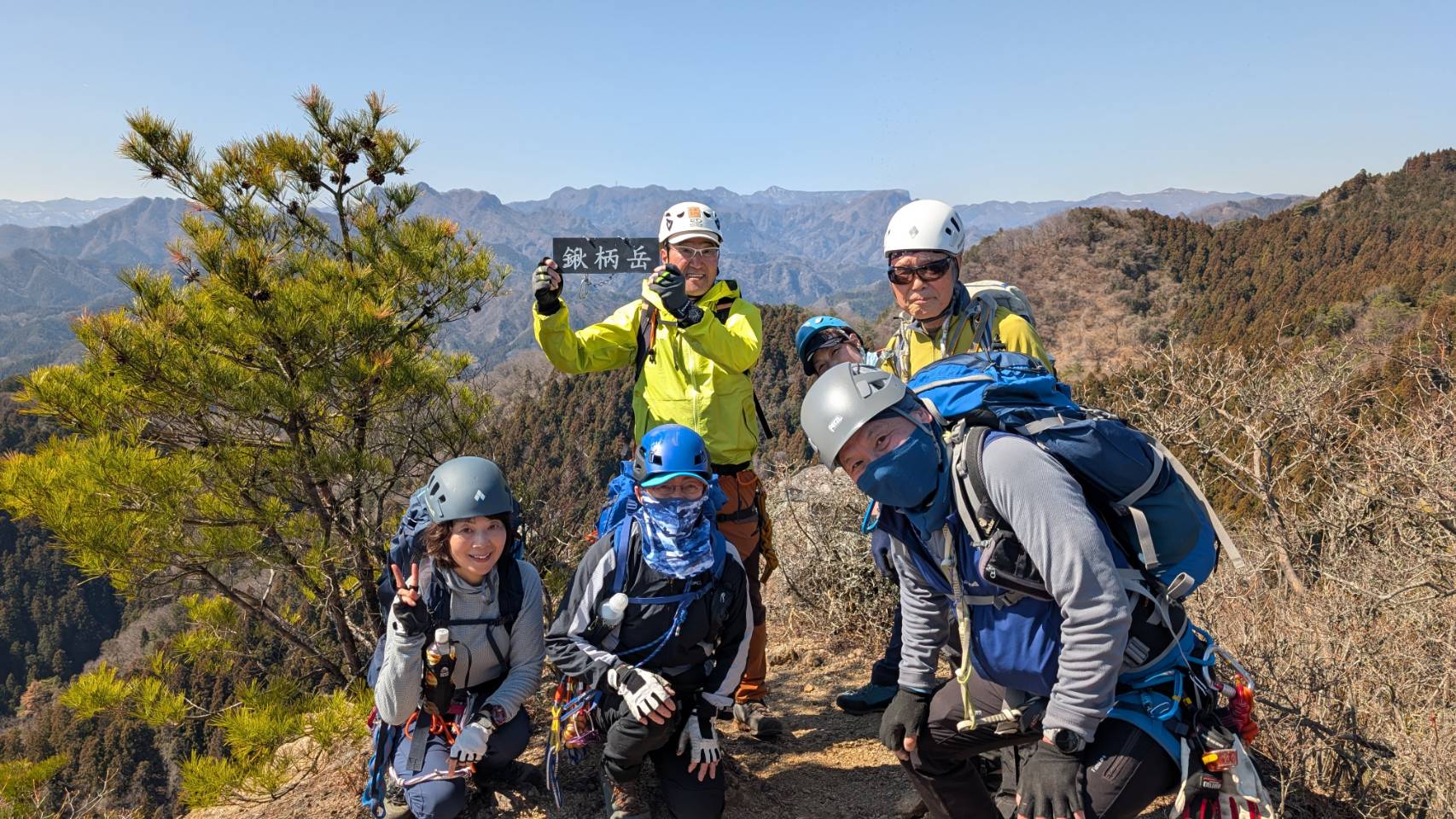 駅から登山口までロード歩き。鋤柄岳の岩山の手前でヘルメット、ハーネス、セルフビレイを装着。鎖はついているので、セルフビレイのカラビナで通過し登っていく。が、片側は、切れ落ちているので、注意して登る。一歩づつ登っていくといつの間にか頂上だ。